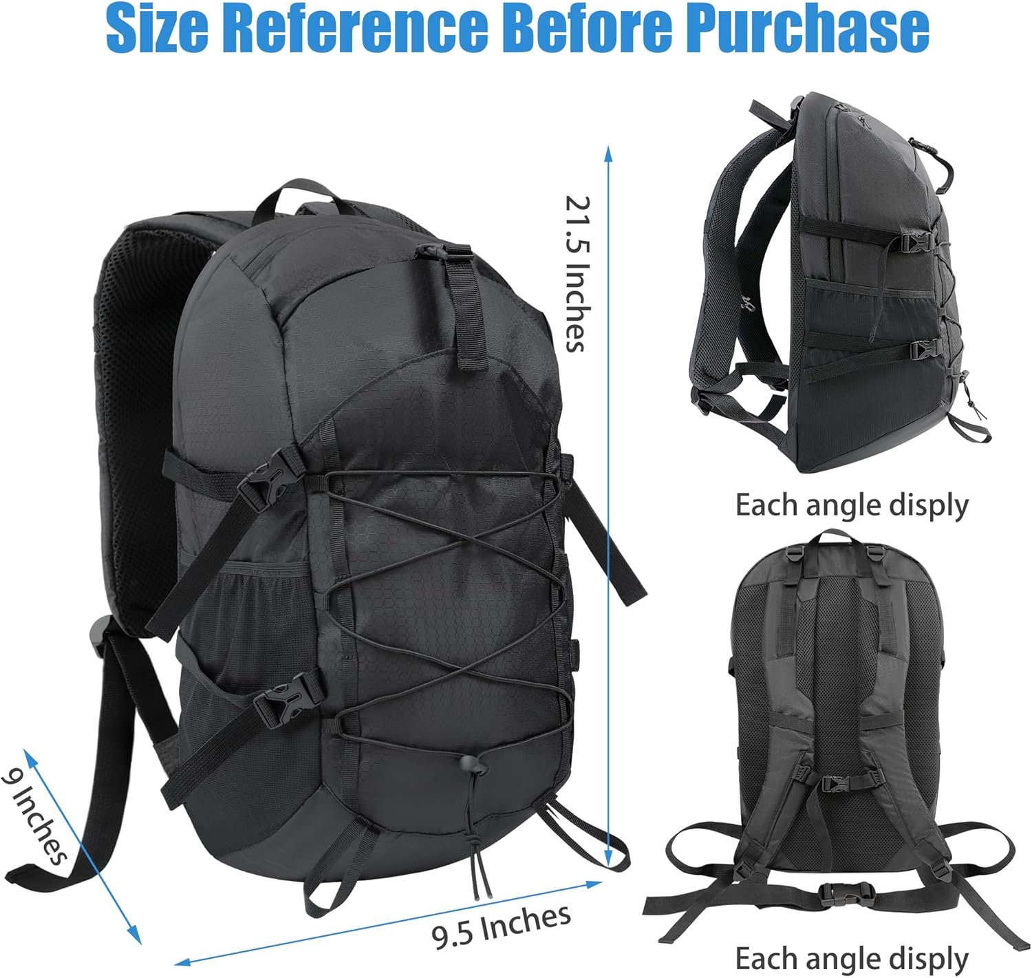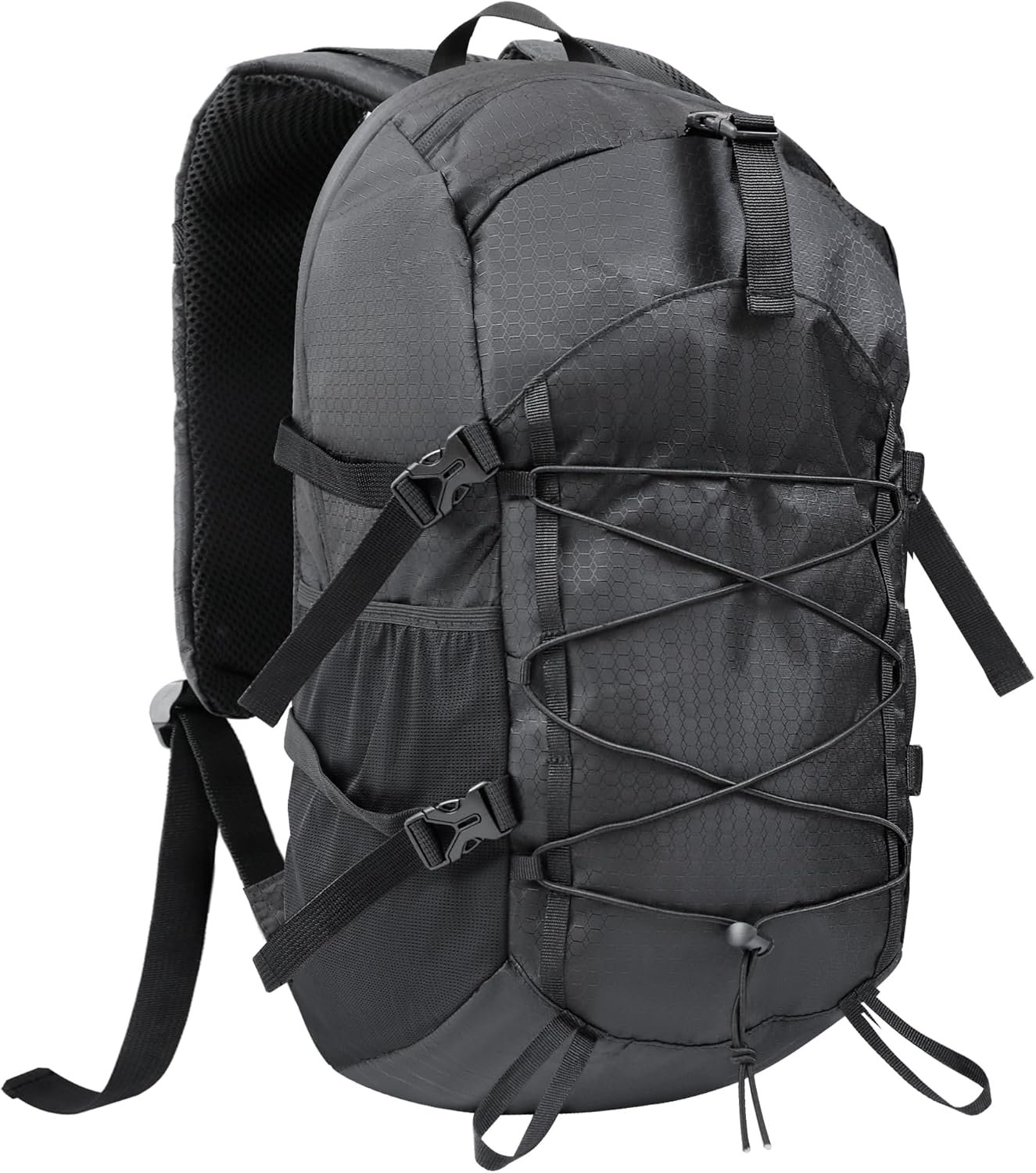 - Durable and Water-resistant Material: Made of 420D PU honeycomb fabric, the hiking backpack is tough and water-resistant, keeping your belongings safe and dry.