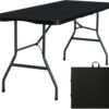 - PRACTICAL AND LIGHTWEIGHT: 6ft fold up table weighs 23 pounds, the unfolded size is 70.8″ L x 27.5″ W x 29.1″ H; the folded size is 35.4″ L x 27.5″ W x 3″ H. It requires no assembly and sets up or folded in minutes. Comfortably seating 4-6 adults