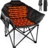 - 【Foldability & Portability】The heated folding chair is designed to be portable, making them suitable for backpacking, car camping, or any outdoor activity where you need to bring your own seating. They are typically lightweight and foldable, making them easy to carry and store.